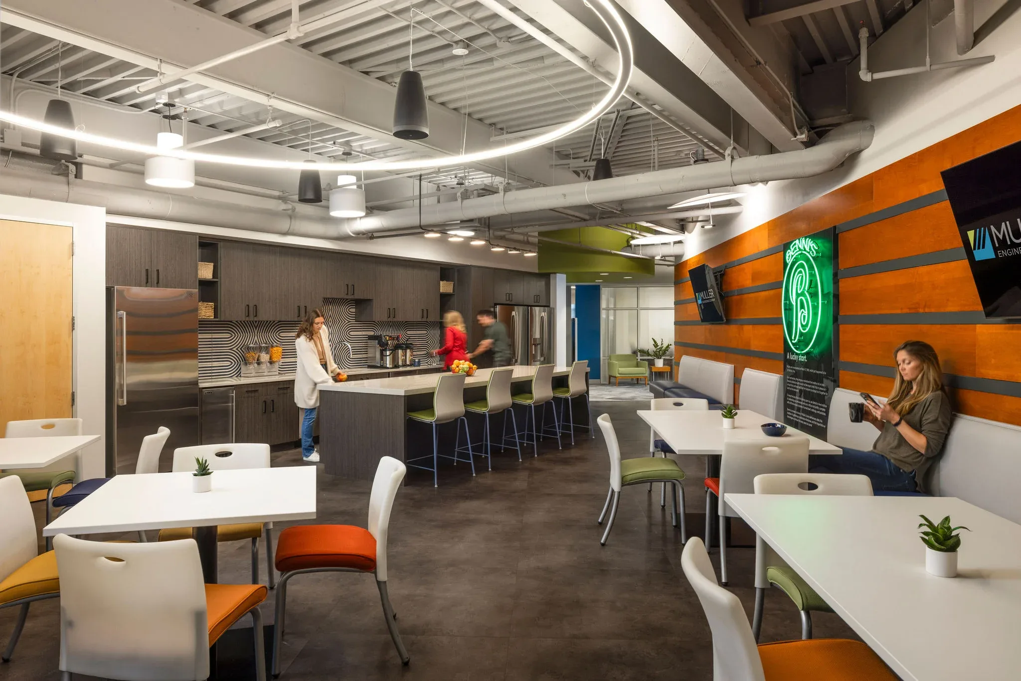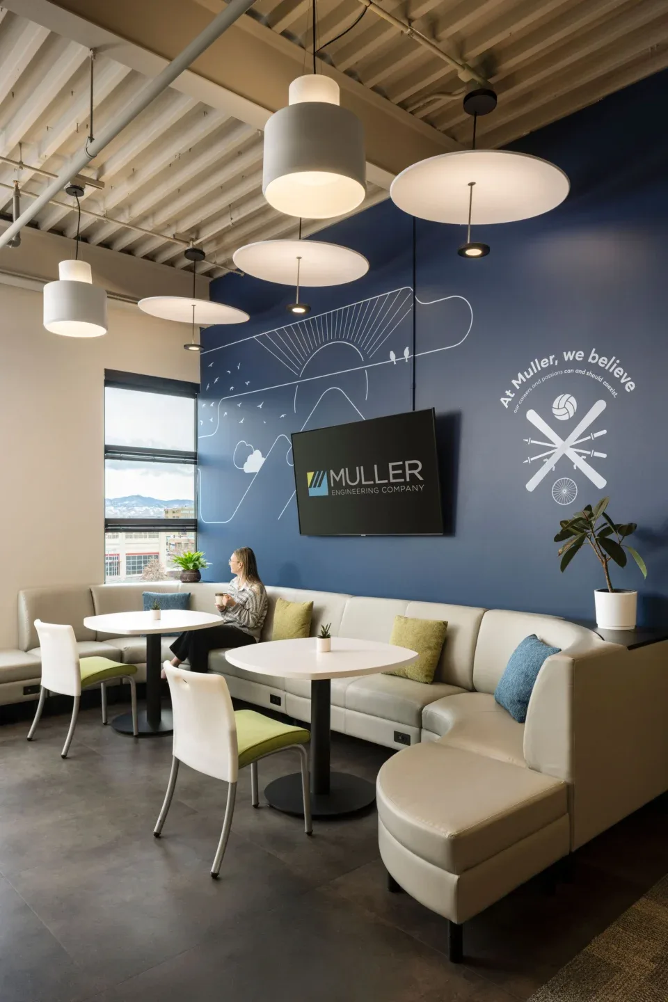 Muller Engineering is expanding its workplace in Lakewood, Colorado. Having previously completed tenant improvements within the building, our architecture and interior design teams were engaged to design an 8,783 sf addition in an adjacent vacant suite. Drawing on our familiarity with the space, we worked to blend the new expansion seamlessly with the existing office for a cohesive, unified feel.