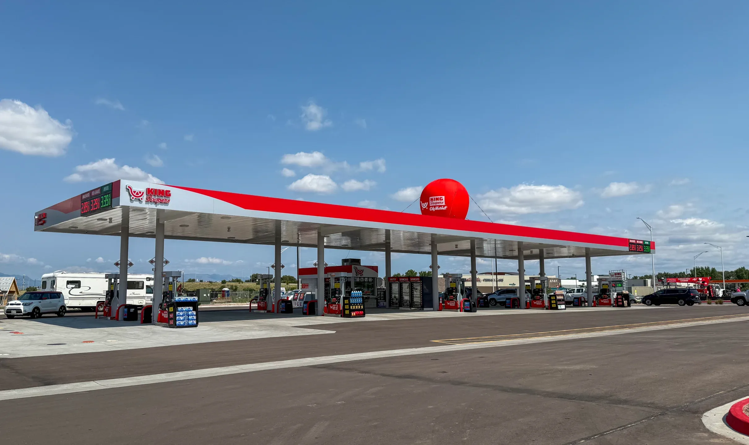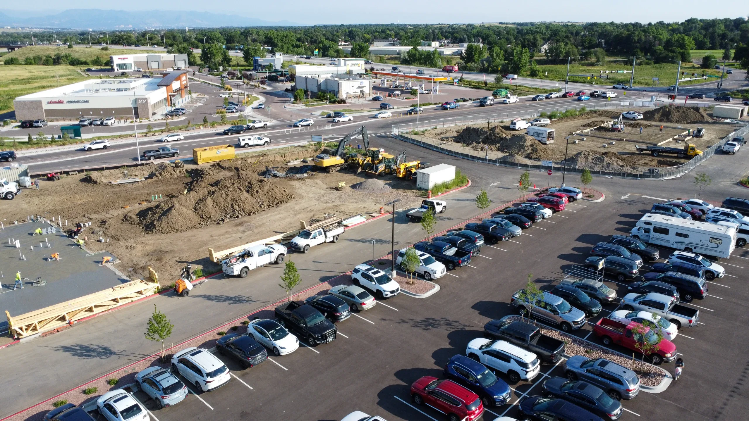 Galloway is providing civil engineering, survey, fueling design, landscape architecture, and site development services for the Mesa Ridge and Syracuse shopping center in Fountain, Colorado. The project, anchored by a King Soopers Marketplace, aims to establish a vibrant commercial hub that will meet the needs of the local community. The project includes in‑line tenant retail spaces, a fueling station, and provision for future retail outlots, including Whataburger, ENT Credit Union, Sourdough & CO, Dave’s Hot Chicken, Great Clips, and Pacific Dental.