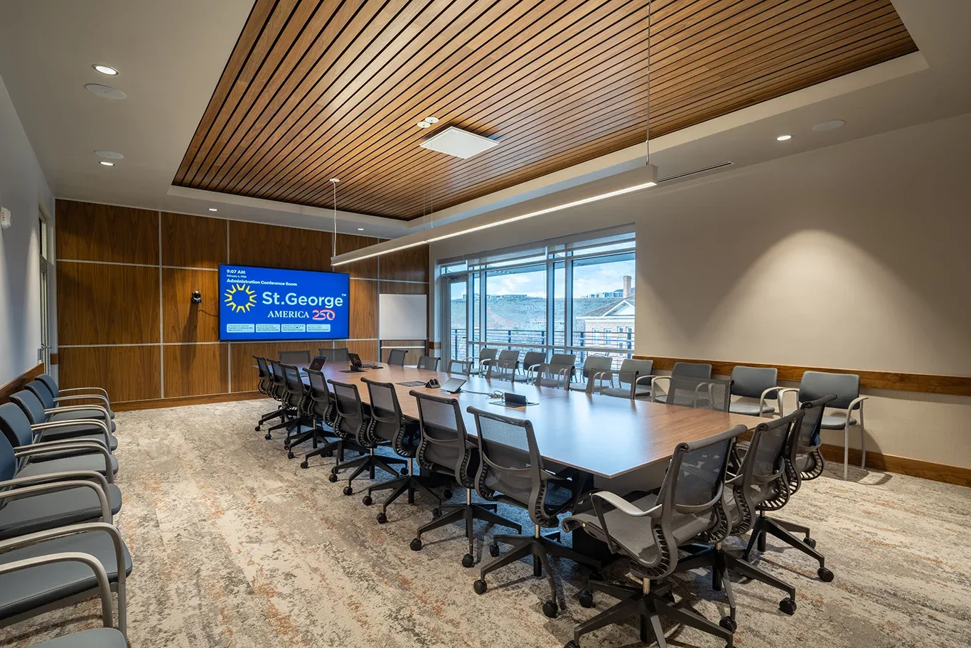 As St. George City has grown, there has been a need for a larger council chamber. The new council chamber has a seating capacity of 300 community members and can be divided into smaller meeting spaces. The space was designed to meet various city needs. In addition, we programmed 4,000 sf of civic space for various city events. The adaptable space offers a vibrant setting for city art shows, local art exhibitions, marathon registrations, and various other events. Employee collaboration spaces have been planned throughout the building to give employees plenty of space to work together in a team environment.