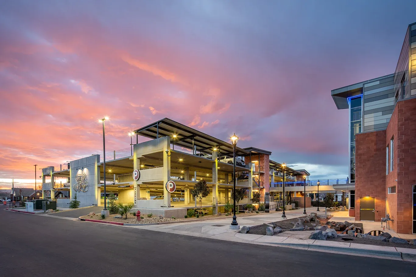 Galloway successfully addressed the need for a distinctive city hall by conducting visioning workshops and site planning sessions. Located in downtown St. George, the building lines up with the clock tower in the center of the town square. The new building blends historic downtown architecture with modern design. Adjacent to the building will stand a new 300-stall public parking structure serving the downtown area. The design also features a multifunctional plaza space for the residents to use and to host community events.