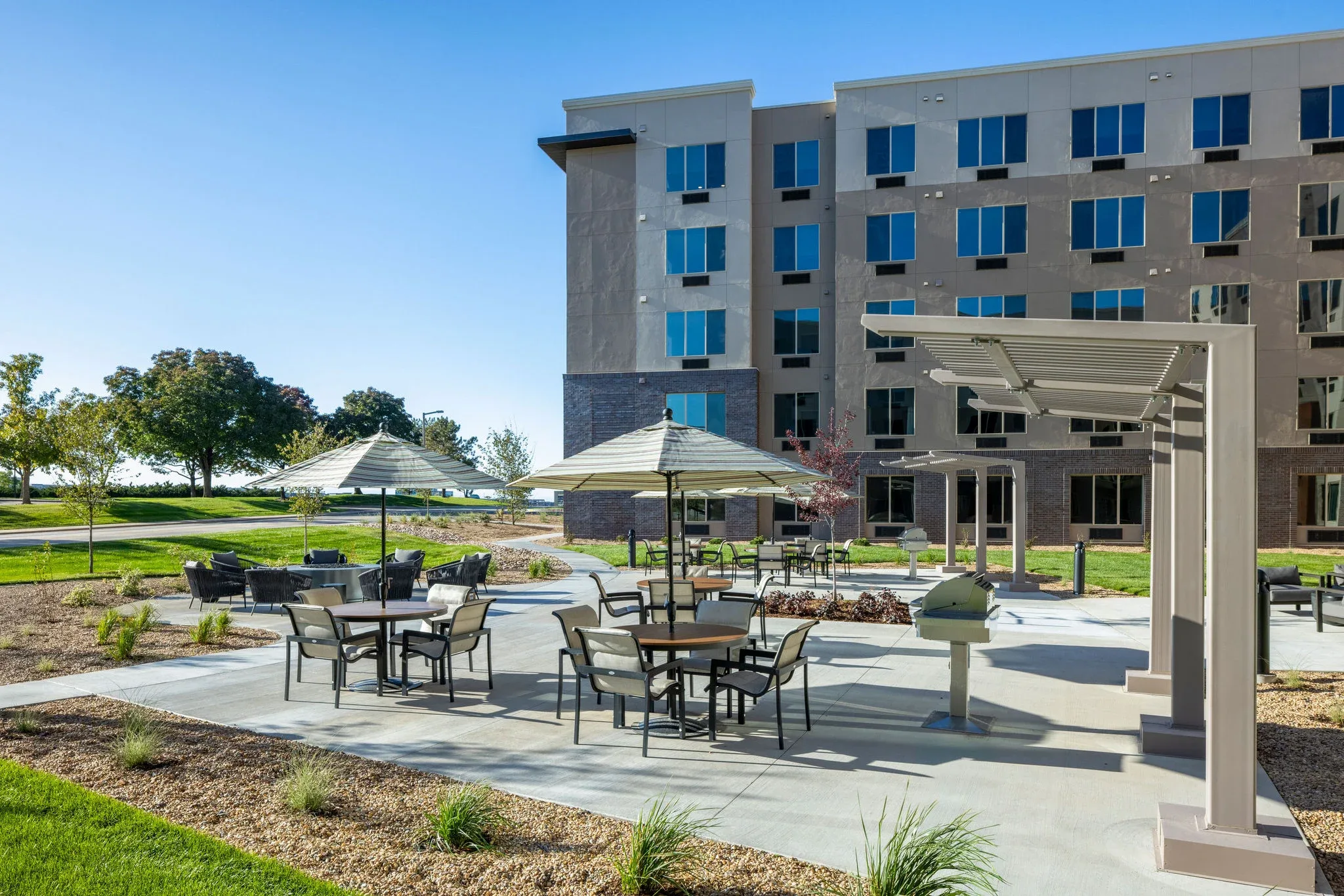 A key focus of the landscape architecture was accessibility—creating a relaxed, walkable environment with convenient and flexible outdoor recreation and gathering areas. Galloway designed passive outdoor spaces that include fire pit seating, outdoor BBQ areas, and open lawns with seating for both private and small group gatherings.