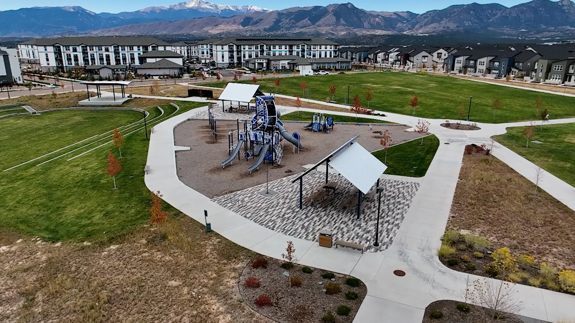 Another exciting feature adjacent to the playground is a plaza space featuring two large, 20’x24’ shelters with picnic tables, offering great opportunities for community gatherings.